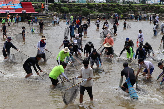 은어체험행사에 반두잡이 그리고 맨손잡이 두가지가 진행되고있죠
